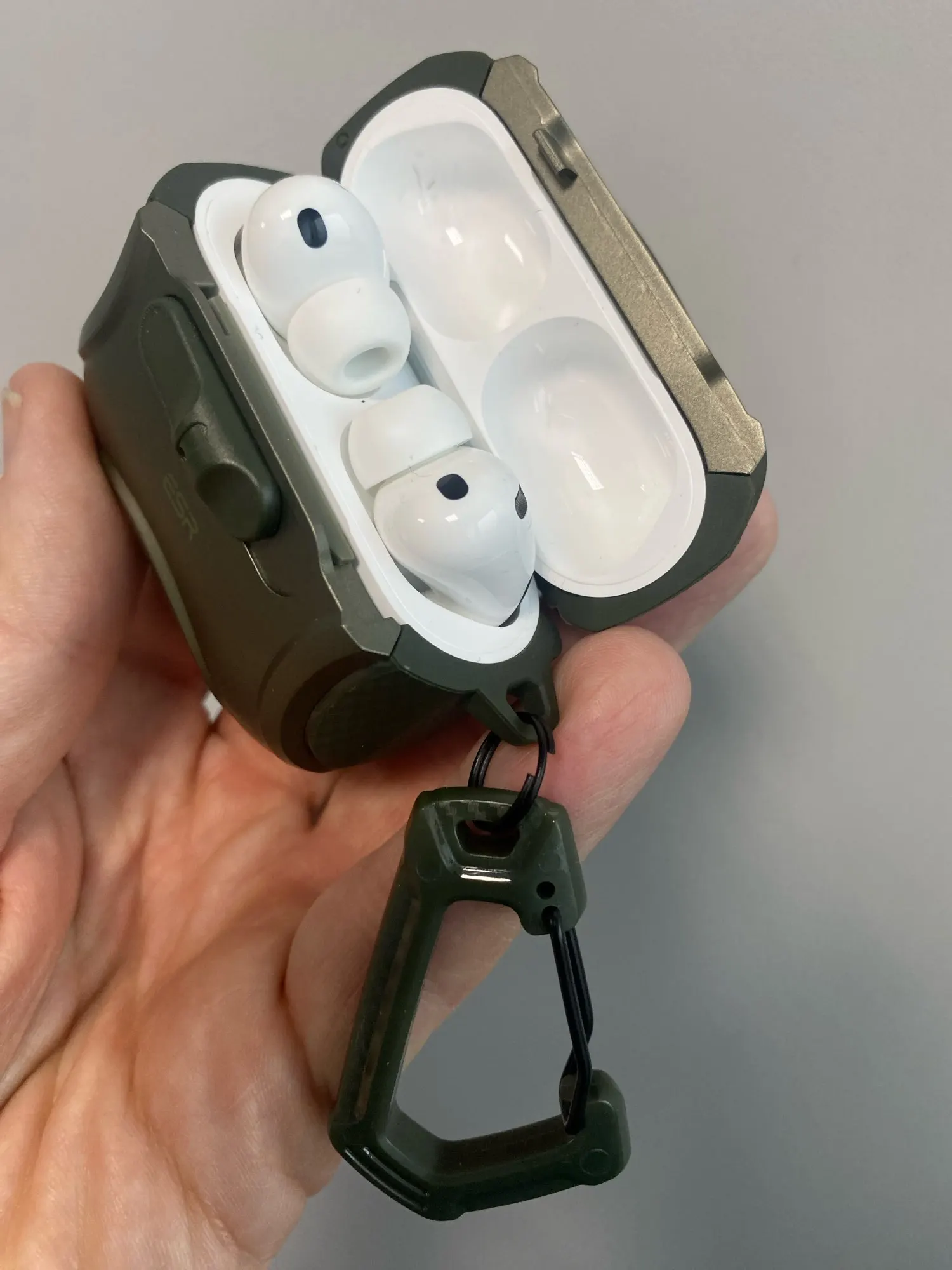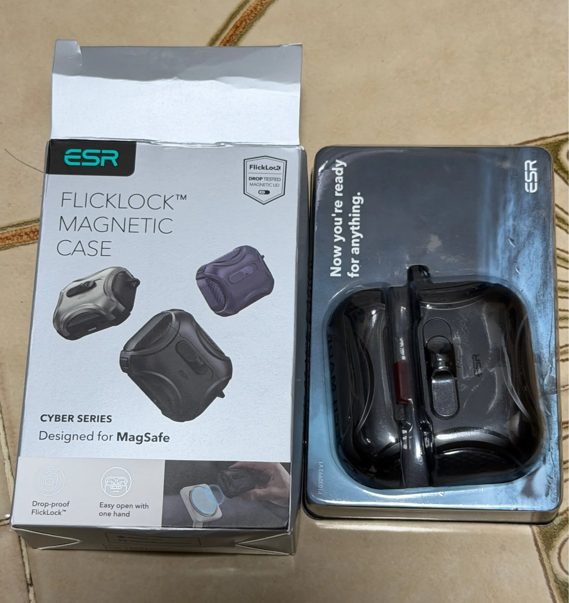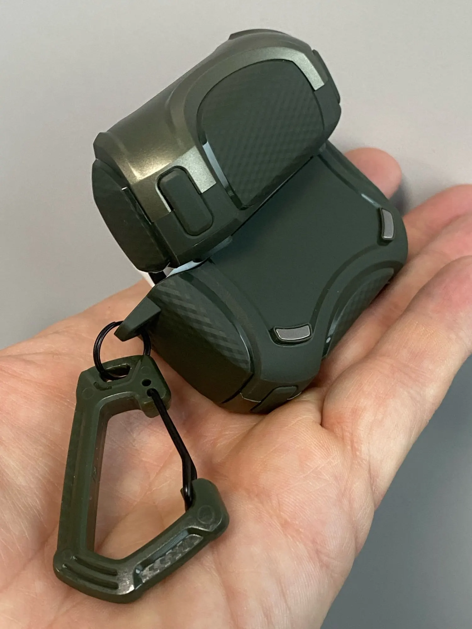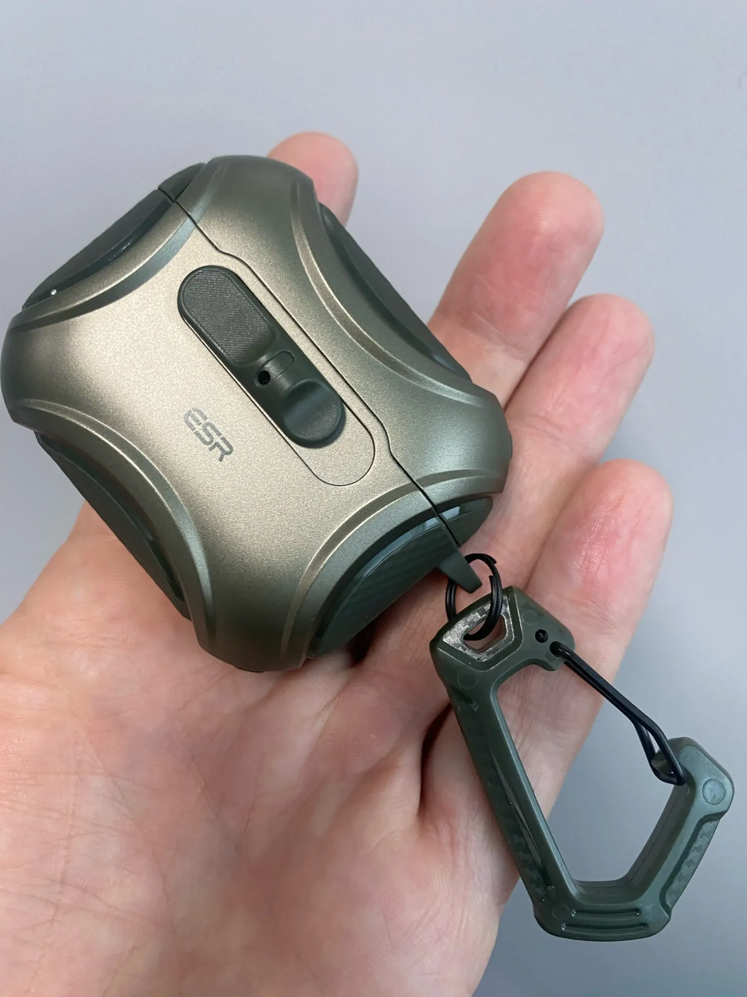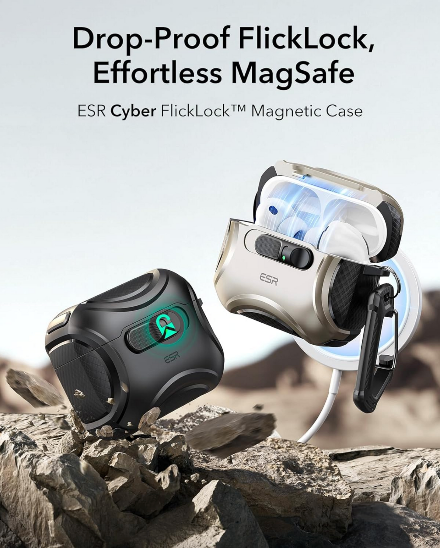 Secure FlickLock: strong magnets with a holding force of 750g in the top and bottom of the lid, and an internal latch keep your AirPods locked safely inside so they won’t pop out if dropped