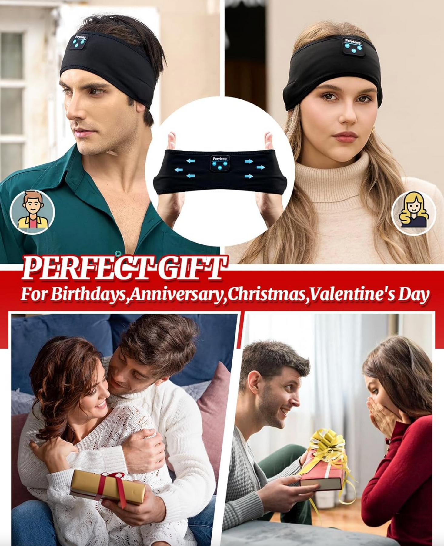 4-in-1 Design: Sleep headphones, wireless headphones, sleep mask, and sports headband