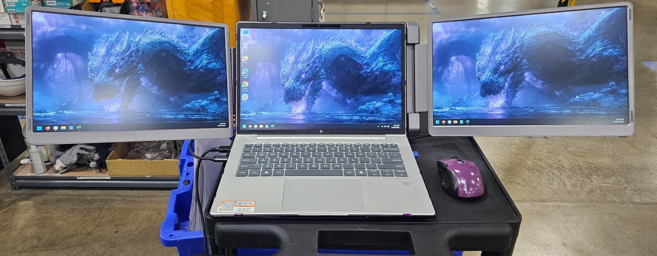 Instant Dual-Screen Setup – Expand your laptop with two portable displays for seamless multitasking on the go.