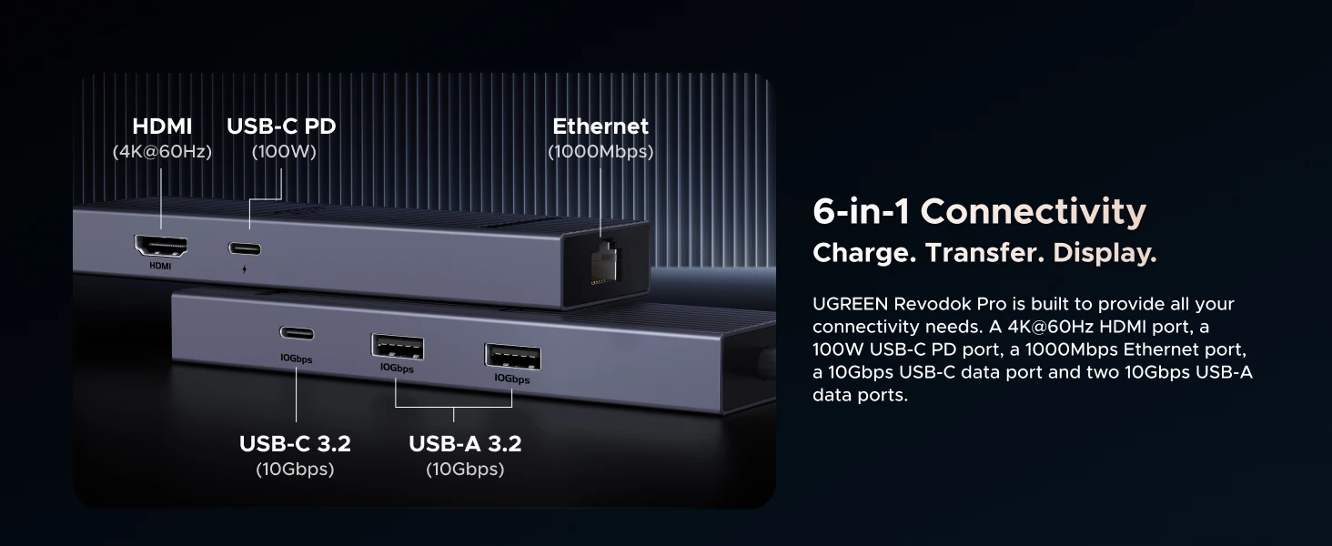 UGREEN 6 in 1 USB C HUB Gigabit Ethernet Adapter with 4K60Hz HDMI PD100W Charging 10Gbps USB A&C 3.2 Data Ports for Laptop iPad